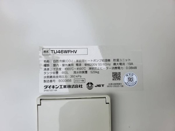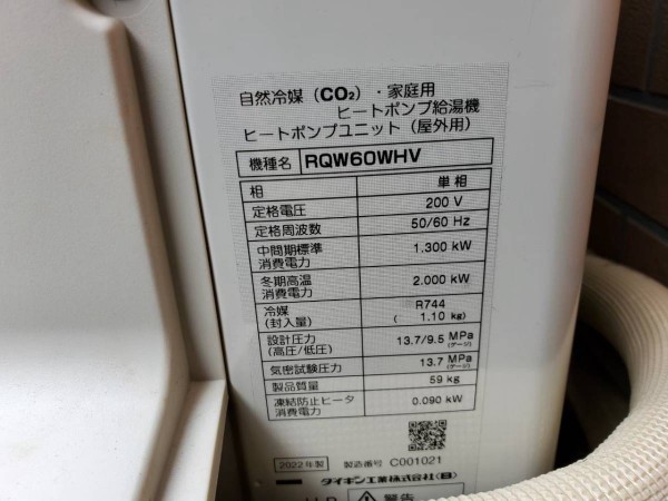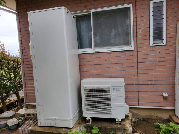 馬路村 ダイキン自然冷媒CO2・家庭用ヒートポンプ給湯機ヒートポンプユニットRQW60WHV・貯湯ユニットTU46WFHV エコキュート交換工事