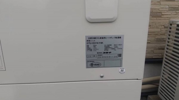香美市 コロナ自然冷媒CO2家庭用ヒートポンプ給湯機 貯湯ユニットCTU-E37AY4K エコキュート交換工事