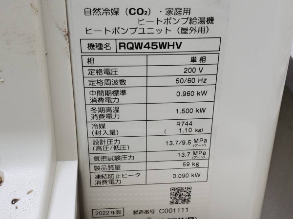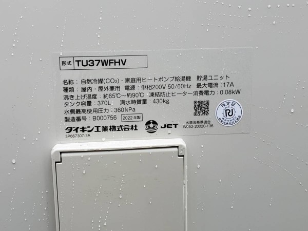 いの町 ダイキン自然冷媒(CO2)・家庭用ヒートポンプ給湯機 貯湯ユニットTU37WFHV、ヒートポンプユニットRQW45WHV エコキュート交換工事