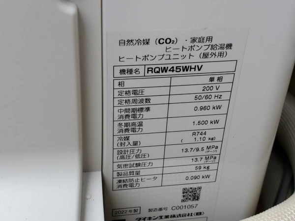 四万十市 ダイキン自然冷媒(CO2)・家庭用ヒートポンプ給湯機 貯湯ユニットTU37WFHV,ヒートポンプユニット RQW45WHV エコキュート交換工事