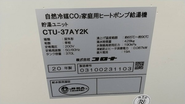 大月町コロナエコキュート交換工事CTU-37AY2K