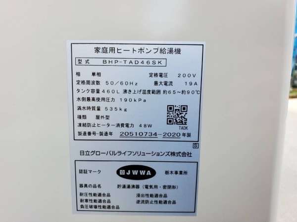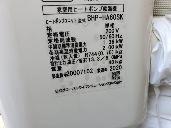 大豊町HITACHIエコキュート交換工事 BHP-HA60SK BHP-TAD46SK