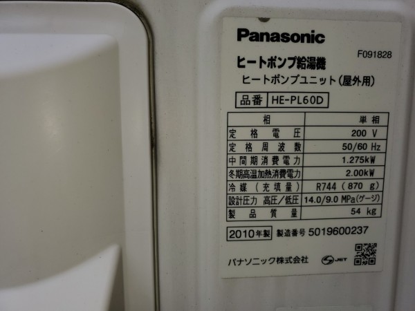 大川村 パナソニックエコキュートHE-PL60D→日立家庭用ヒートポンプ給湯機BHP-TAD37UK エコキュート交換工事
