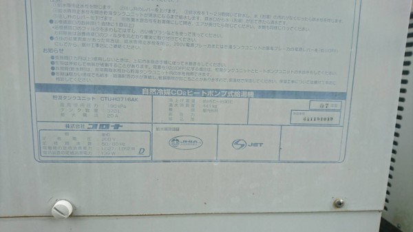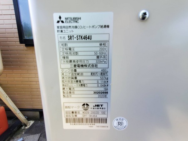 越知町三菱電機家庭用自然冷媒CO2ヒートポンプ給湯器貯湯ユニットSRT-STK464U