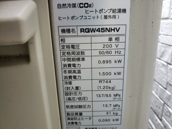 黒潮町 ダイキンエコキュート→ダイキン自然冷媒(CO2)・家庭用ヒートポンプ給湯機貯湯ユニットTU37XFHV エコキュート交換工事