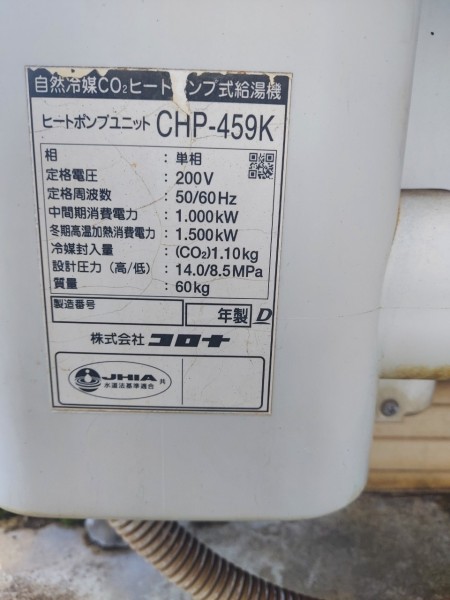 大月町 コロナエコキュートCHP-459K→コロナ自然冷媒CO2家庭用ヒートポンプ給湯機ヒートポンプユニットCHP-Y454K エコキュート交換工事