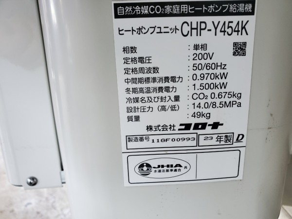 いの町 コロナ自然冷媒CO2家庭用ヒートポンプ給湯機ヒートポンプユニットCHP-Y454K エコキュート交換工事