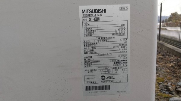 大川村三菱電機家庭用自然冷媒CO2ヒートポンプ給湯機SRT-NTK465D