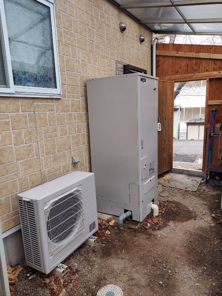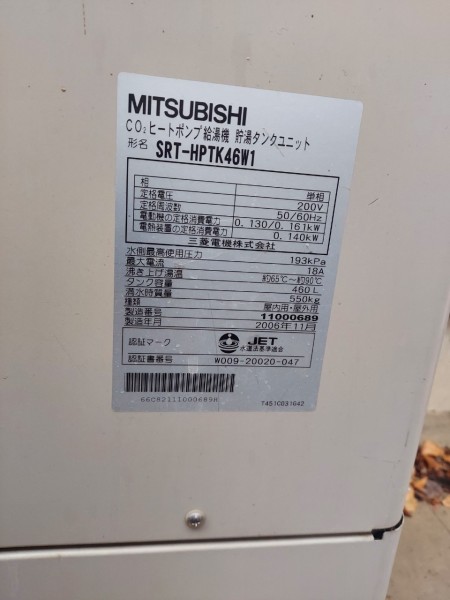 宿毛市 三菱電機エコキュート→三菱電機自然冷媒CO2家庭用ヒートポンプ給湯機貯湯ユニットSRT-STK376D、ヒートポンプユニット エコキュート交換工事