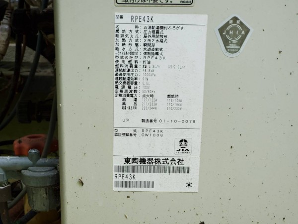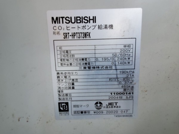 北川村三菱電機CO2ヒートポンプ給湯機SRT-HPT373WFK、TOTO石油給湯器付ふろがまRPE43K→コロナエコキュート