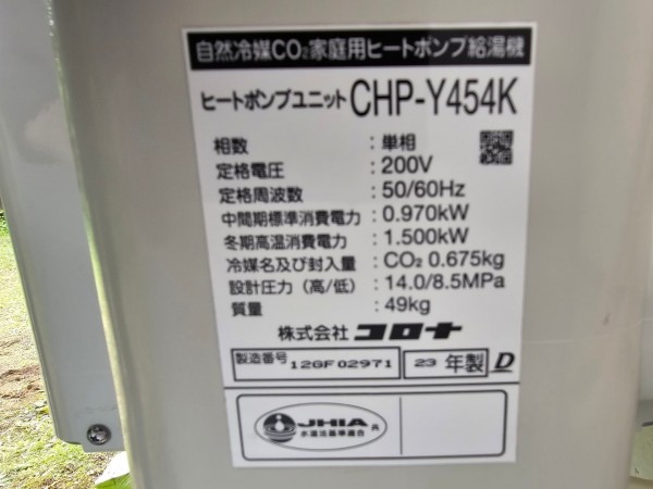 土庄町 コロナ自然冷媒CO2家庭用ヒートポンプ給湯機ヒートポンプユニットCHP-Y454K エコキュート交換工事