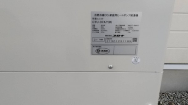 高知市コロナ自然冷媒CO2家庭用ヒートポンプ給湯機貯湯ユニットCTU-37AY2K