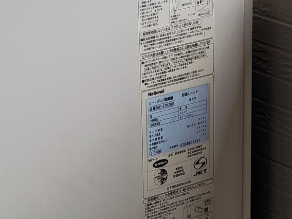 高知市NATIONAL HE-37K2QK→三菱電機家庭用自然冷媒CO2ヒートポンプ給湯機貯湯ユニットSRT-STK375D