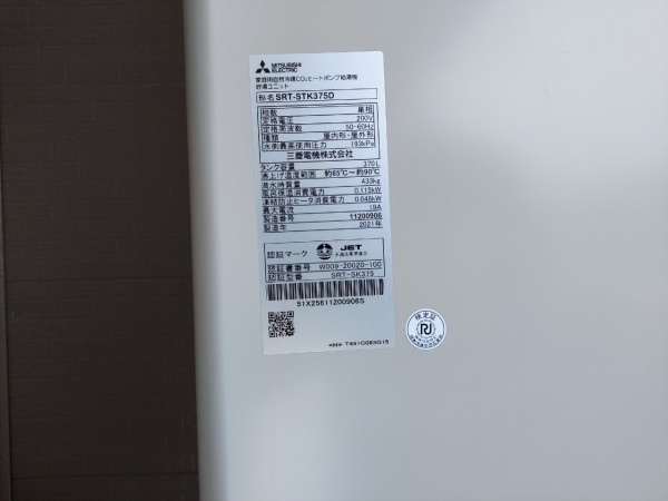 高知市三菱電機家庭用自然冷媒CO2ヒートポンプ給湯機貯湯ユニットSRT-STK375D