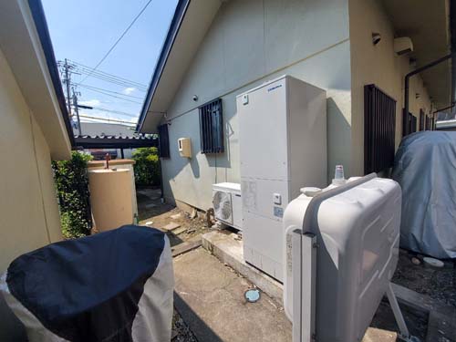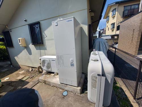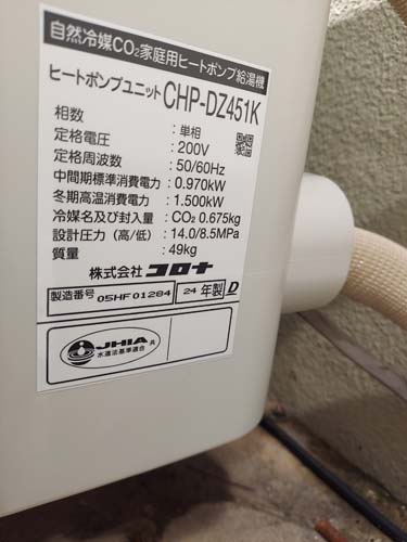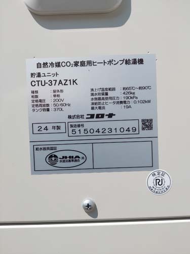観音寺市 コロナ自然冷媒CO2家庭用ヒートポンプ給湯機 貯湯ユニットCTU-37AZ1K、ヒートポンプユニットCHP-DZ451K エコキュート交換工事