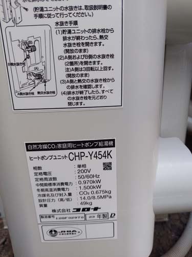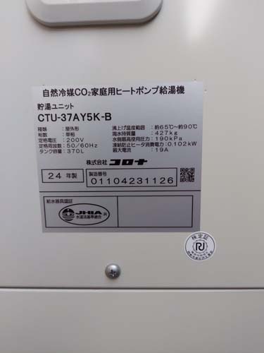 小豆島町 コロナ自然冷媒CO2家庭用ヒートポンプ給湯機 貯湯ユニットCTU-37AY5K-B、ヒートポンプユニットCHP-Y454K エコキュート交換工事
