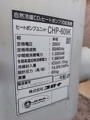 三木町 コロナエコキュートCHP-609K→コロナ自然冷媒CO2家庭用ヒートポンプ給湯機ヒートポンプユニットCHP-DZ601K、貯湯ユニットCTU-46AZ1K エコキュート交換工事
