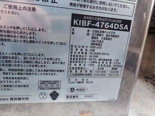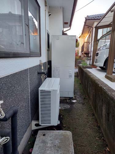 まんのう町 長府製作所給湯器KIBF-4764DSA→コロナ自然冷媒CO2家庭用ヒートポンプ給湯機ヒートポンプユニットCHP-DZ601K エコキュート交換工事
