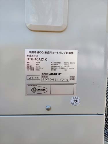 丸亀市 コロナエコキュート→コロナ自然冷媒CO2家庭用ヒートポンプ給湯機貯湯ユニットCTU-46AZ1K エコキュート交換工事