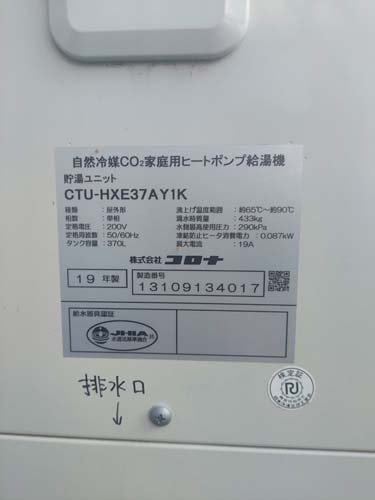 直島町 コロナ自然冷媒CO2家庭用ヒートポンプ給湯機貯蓄ユニットCTU-HXE37AY1K エコキュート交換工事