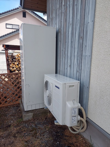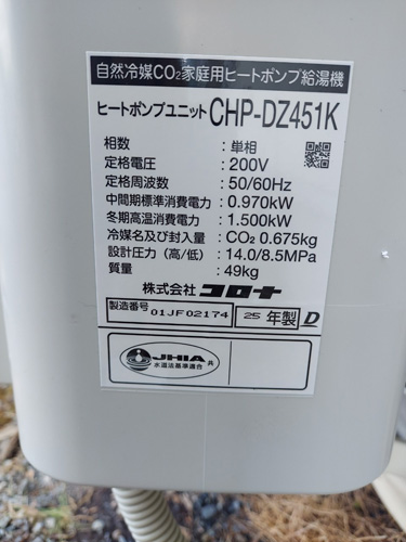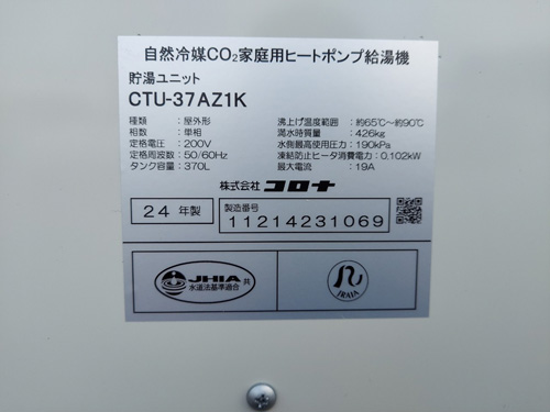 琴平町 コロナ自然冷媒CO2家庭用ヒートポンプ給湯機貯湯ユニットCTU-37AZ1K、ヒートポンプユニットCHP-DZ451K エコキュート交換工事