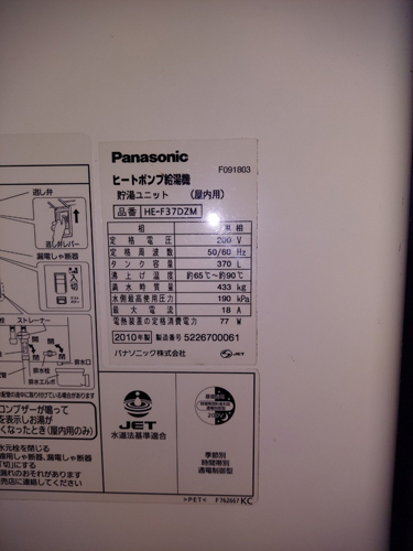 宇多津町 パナソニックヒートポンプ給湯機 貯湯ユニットHE-F37DZM→コロナ自然冷媒CO2家庭用ヒートポンプ給湯機 ヒートポンプユニットCHP-DZ451K エコキュート交換工事