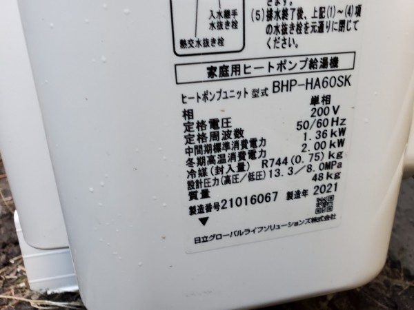 いの町給湯器・ガスコンロ・日立家庭用ヒートポンプ給湯機ヒートポンプユニットBHP-HA60SKエコキュート交換工事