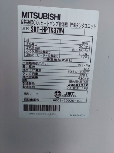 観音寺市昭和町 三菱電機自然冷媒CO2ヒートポンプ給湯機 貯湯タンクユニットSRT-HPTK37W4→コロナ自然冷媒CO2家庭用ヒートポンプ給湯機 ヒートポンプユニットCHP-DZ451K エコキュート交換工事