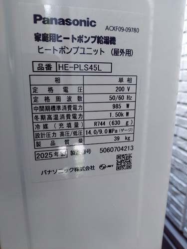 善通寺市文京町 パナソニック家庭用ヒートポンプ給湯機 ヒートポンプユニットHE-PLS45L エコキュート交換工事