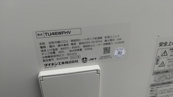 安芸市 ダイキン自然冷媒CO2家庭用ヒートポンプ給湯機貯湯ユニットTU46WFHVエコキュート交換工事